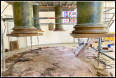 En mars, l’autel est » en suspension », simplement retenu par l’échafaudage, les colonnes reposant sur des supports en bois.